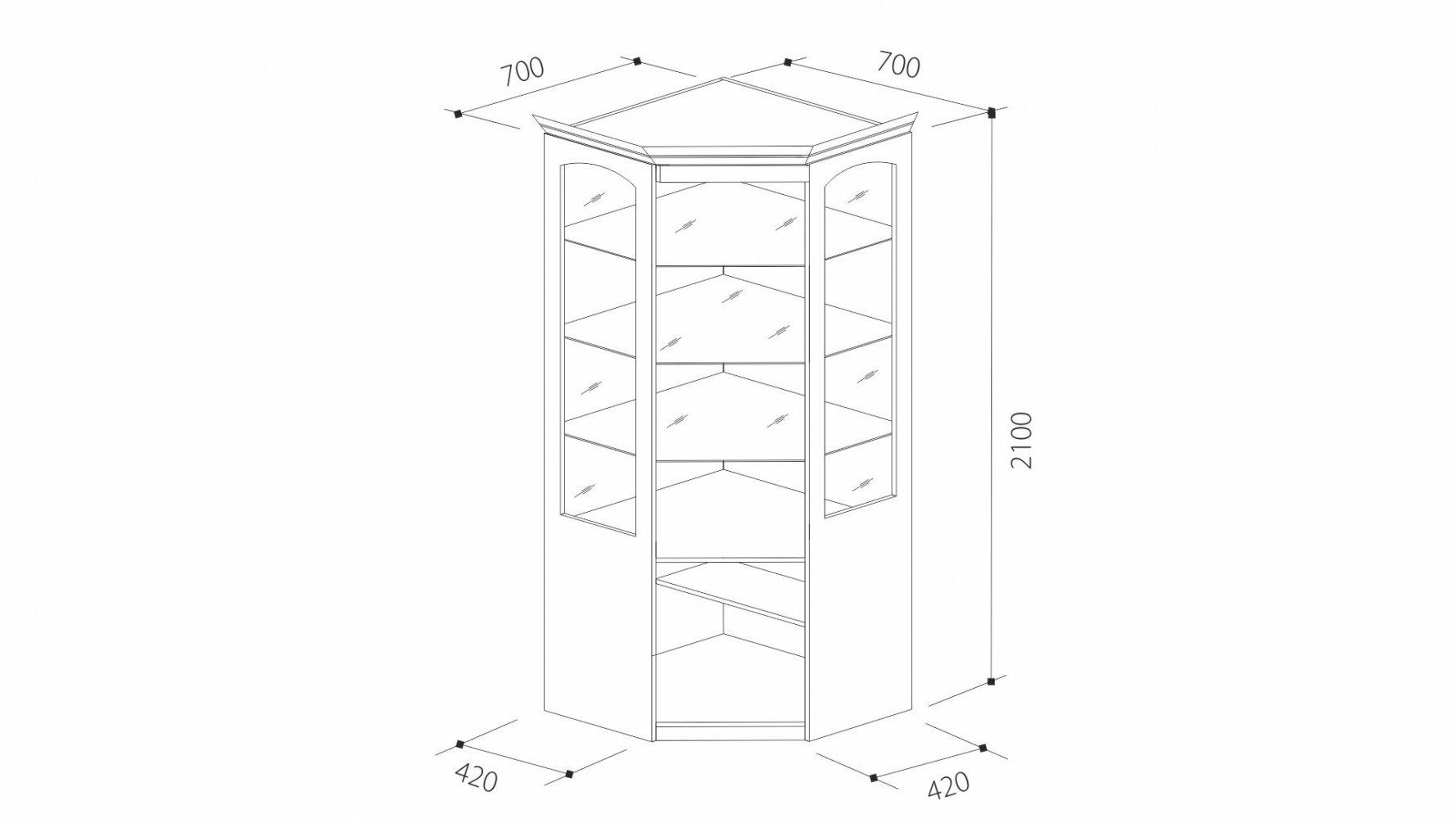 ДхВхШ: 700х700х2100х420 мм.